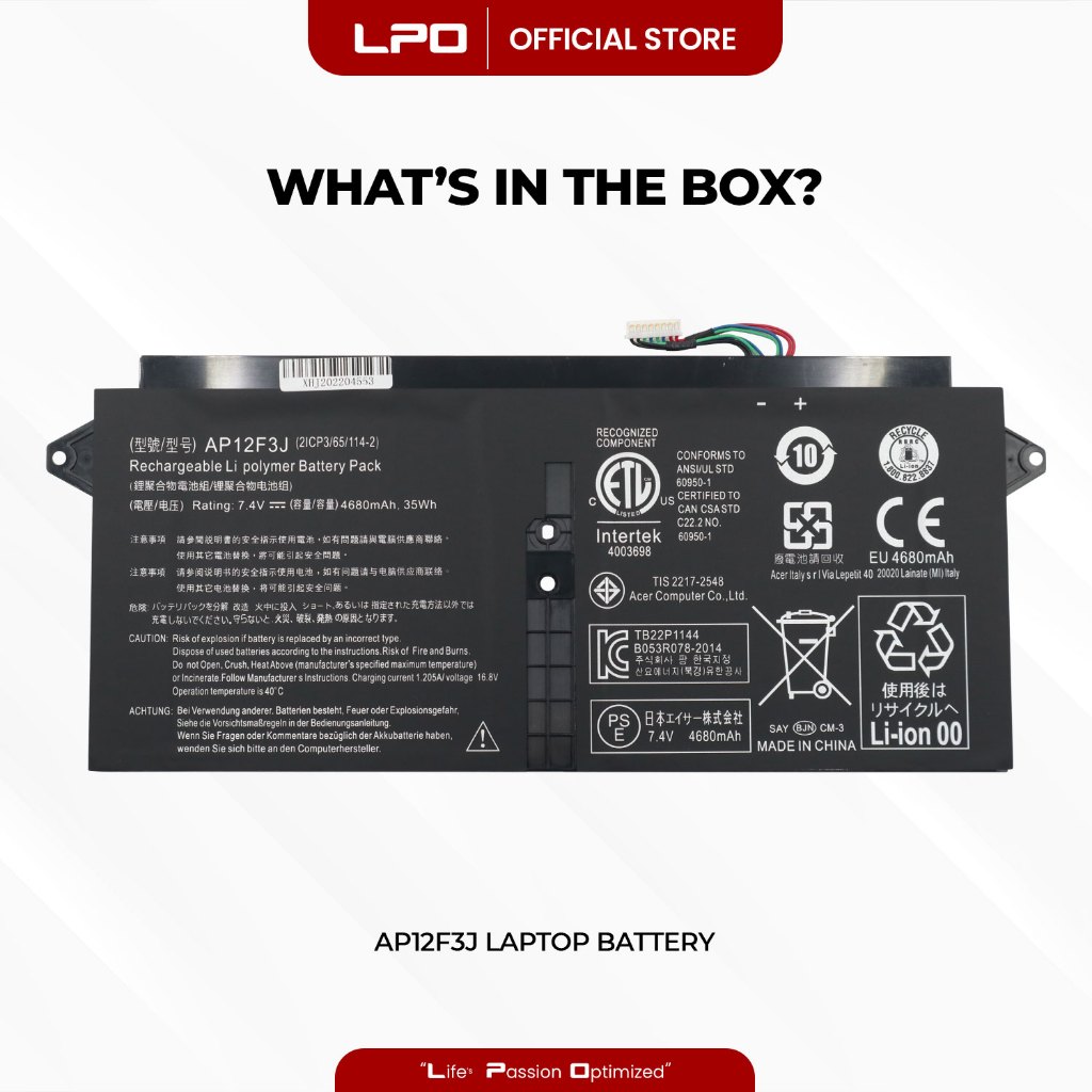 Acer AP12F3J Replacement Battery for Acer Aspire 13.3" S7 Ultrabook S7-391 S7-391-53334G12aws Series