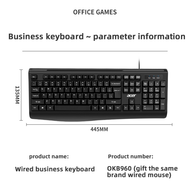Acer Cable Keyboard Cable Keyboard Mouse Set Typing Peripheral Keyboard Mouse Notebook Computer Desktop Office and Home