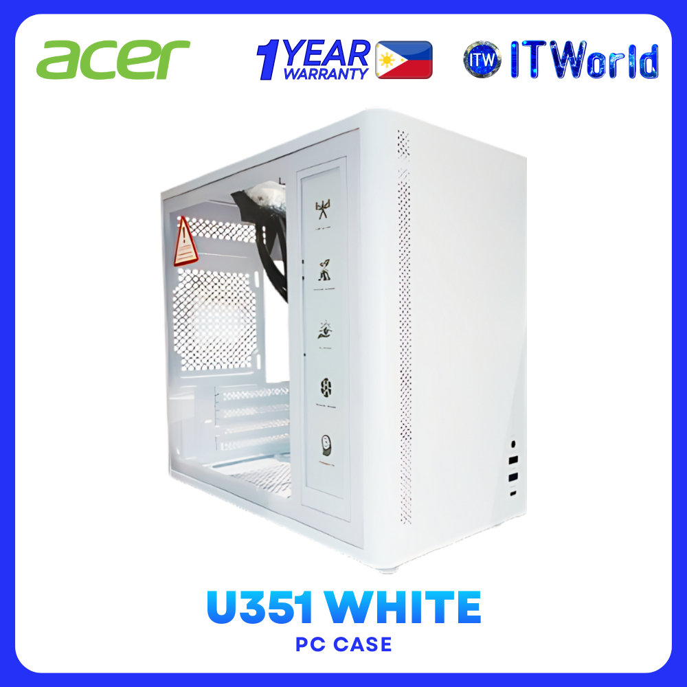 Acer Computer PC Case U351 ITX/micro ATX Tempered Glass White itw