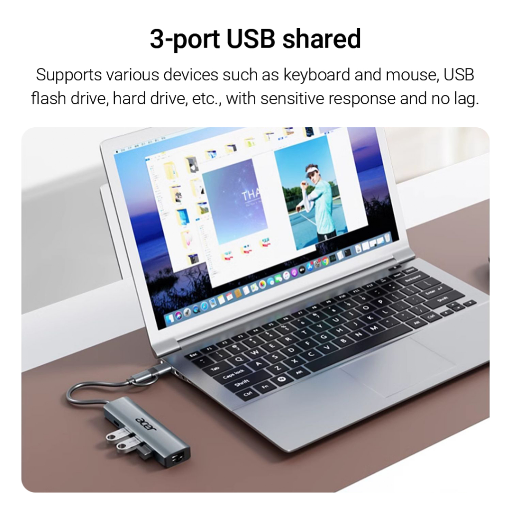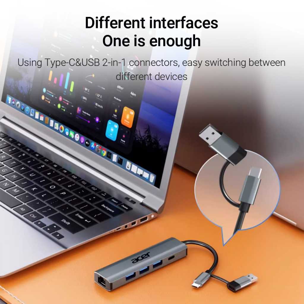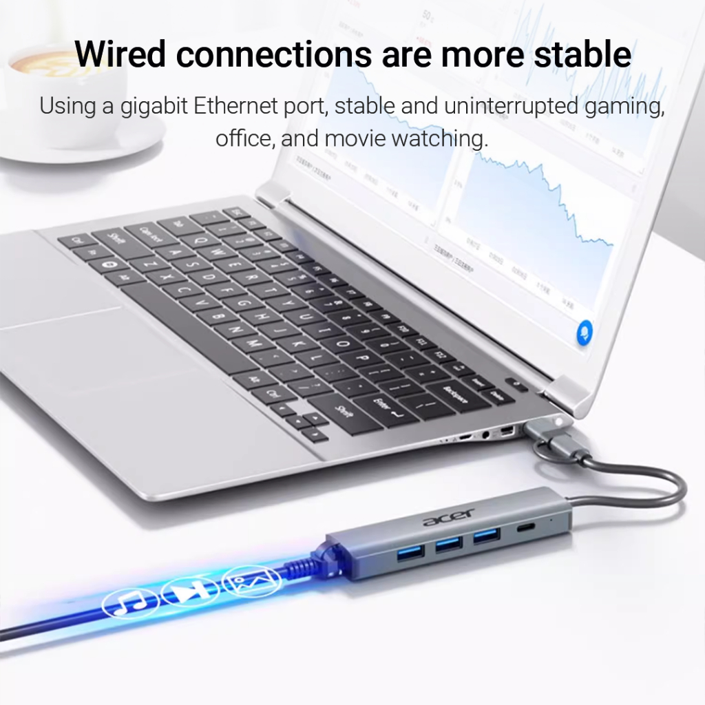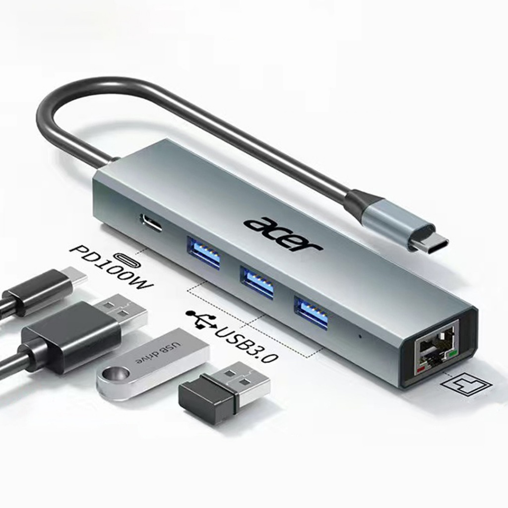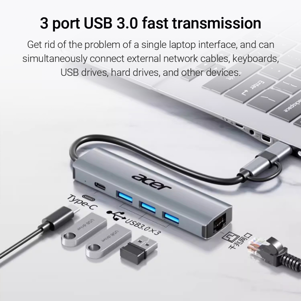 Acer Multi Functional Docking Station, Type-C Gigabit Ethernet Cable Adapter, USB 3.0/2.0, high-speed HUB, Ethernet Port Converter, For Laptops And Desktops