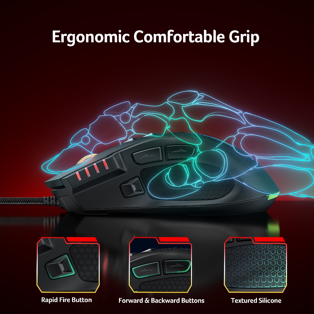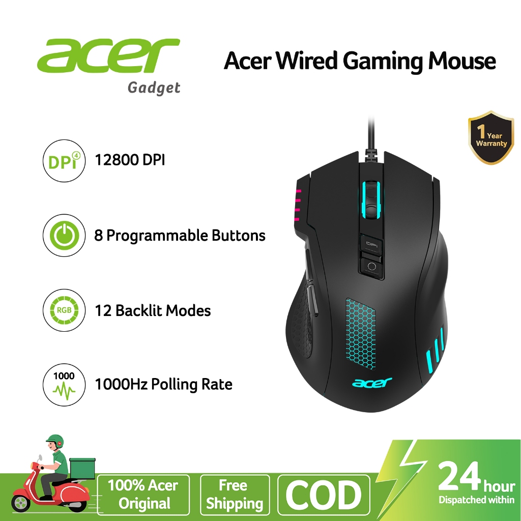 Acer Wired Gaming Mouse 12,800 DPI RGB Ergonomic Computer Mouse with Optical Sensor, 8 Programmable Buttons, 12 Backlit Modes, Software for DIY Keybinds, Rapid Fire, USB Gaming Mic