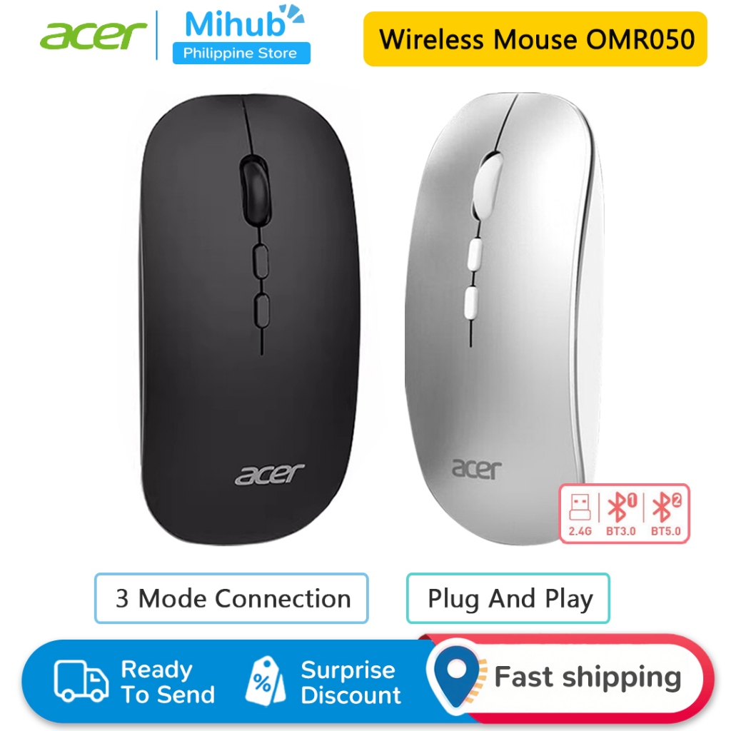 Acer wireless mouse wireless Bluetooth mouse dual -model portable business laptop mobile phone tablet mac universal quiet light sound black office mouse can be charged black