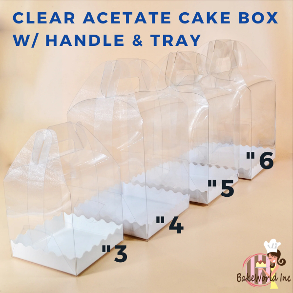 Acetate cake box with handle & tray size 3,4,5,6