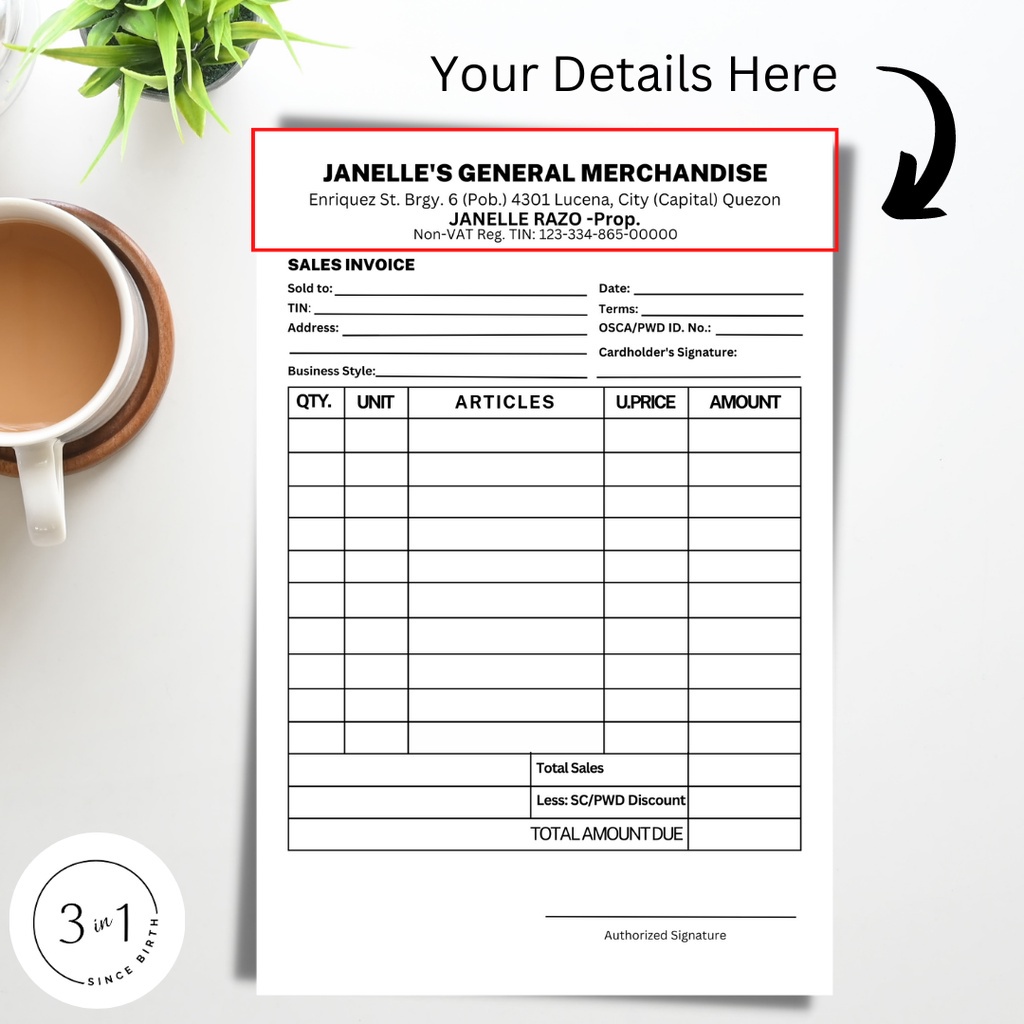 Acknowledgement Receipt Non-BIR Original Non Carbon Pad