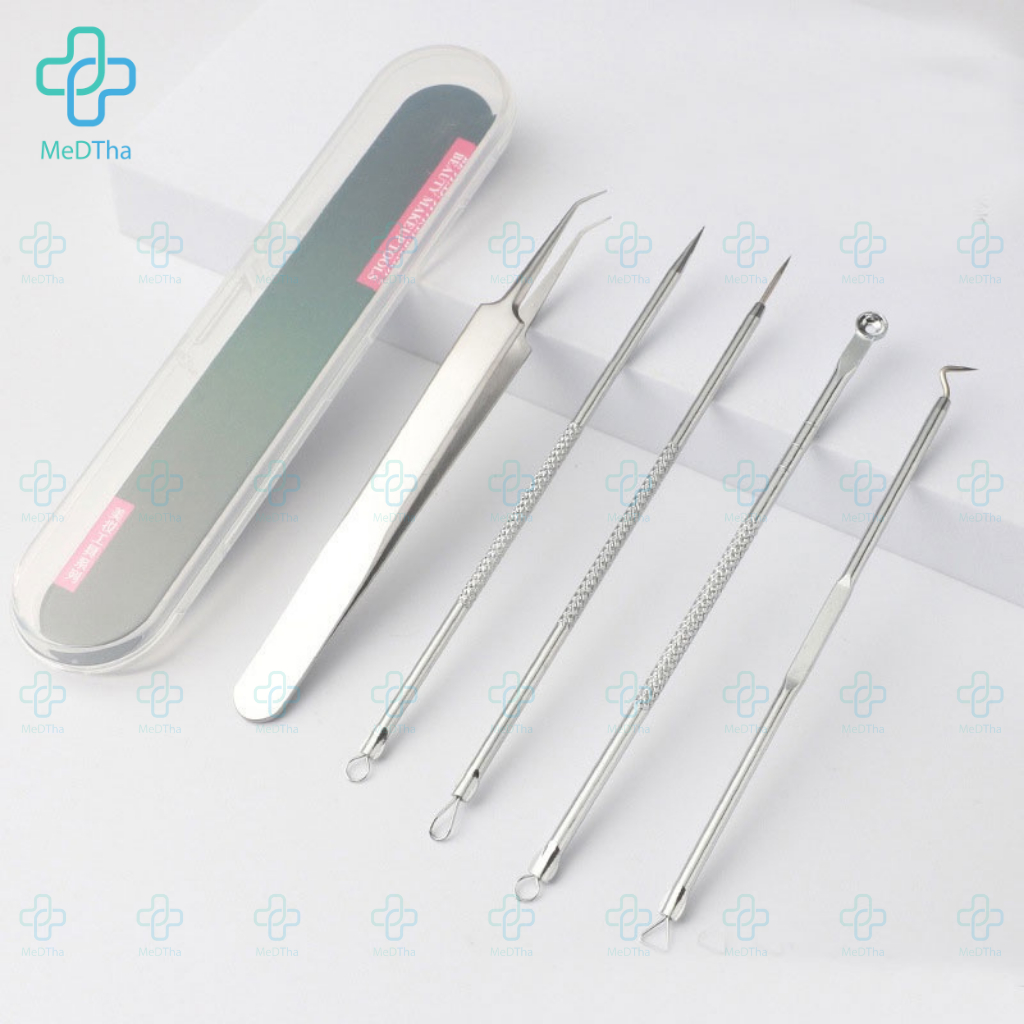 Acne Extraction Tool Set 5 Piece - Removes Blackheads, Acne, Stainless Steel, Safe, Painless