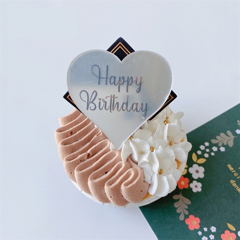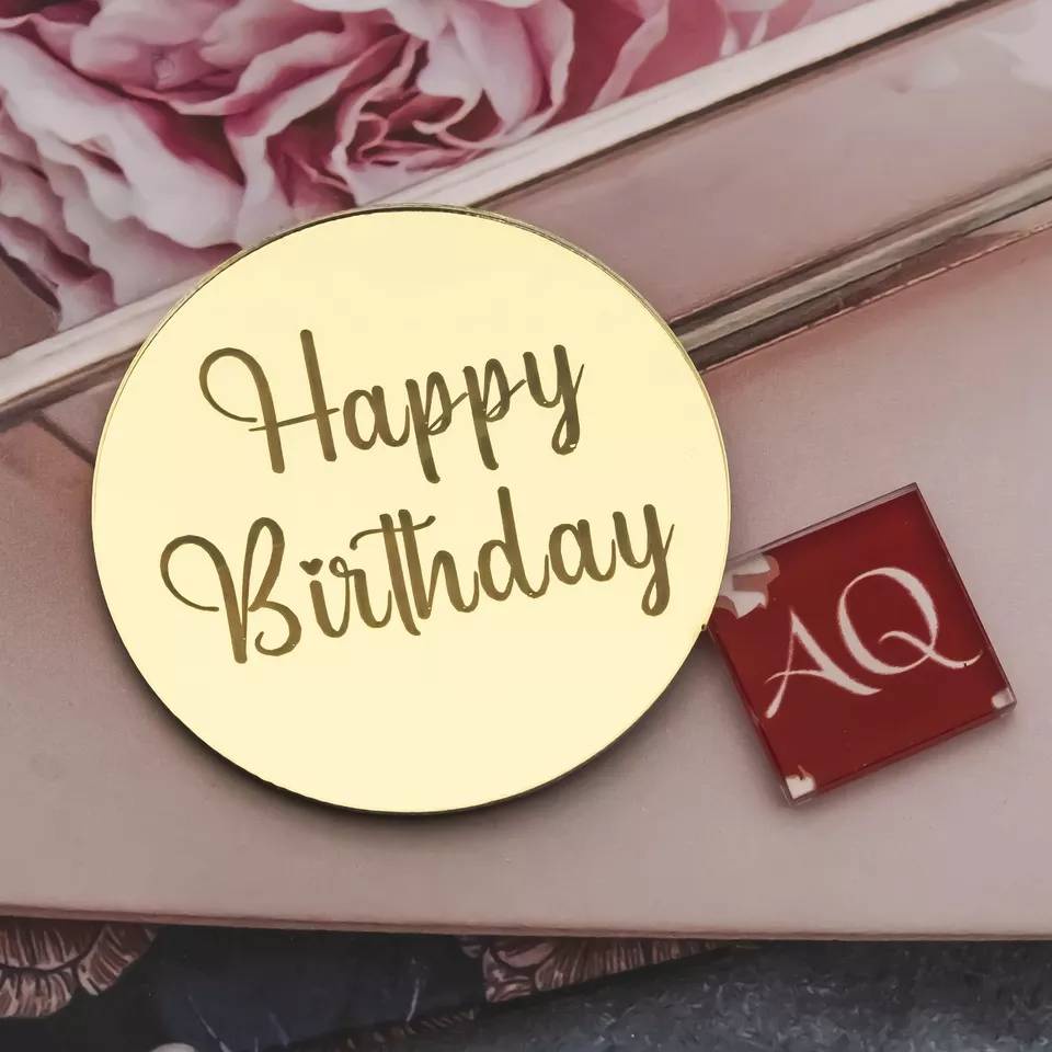Acrylic Cupcake Toppers Happy Birthday Cake Disc Mirror Acrylic Cake Topper Engraved Personalized Cake Topper Mini Acrylic Cake Charm Name Custom Cake Decorations