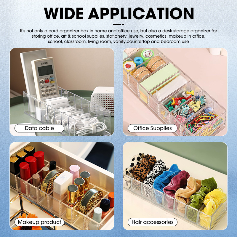 Acrylic Data Cable Storage Box Desktop Storage Organizer Cable Management 8 Grid