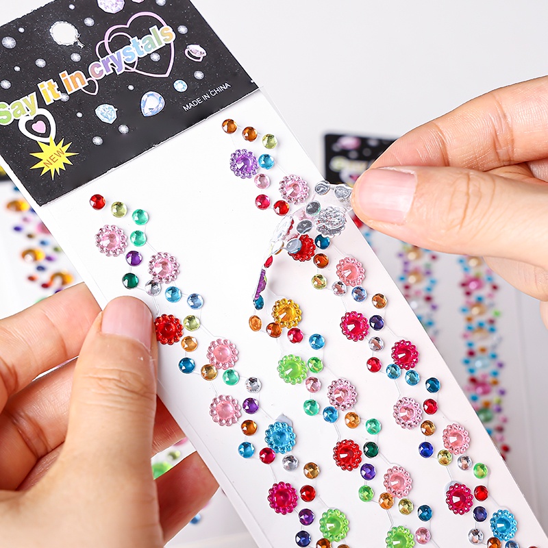Acrylic Diamond Crystal Deco Stickers Colorful Glisten Tearable Stickers