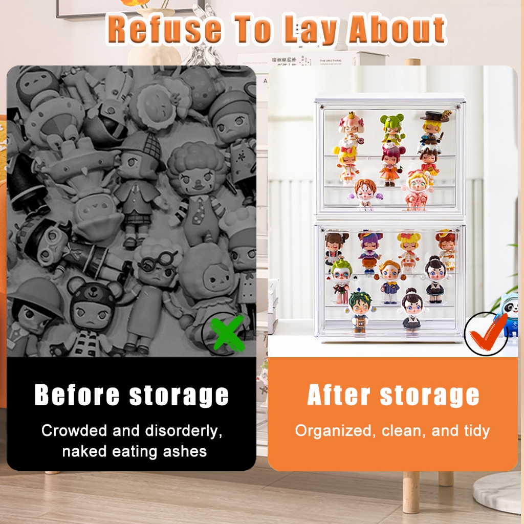 Acrylic Display Case Popmart Storage Organizer Transparent Boxes Stackable Magnetic Dustproof Box