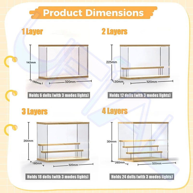 Acrylic Display Case with Lights Wooden Acrylic Display Rack for Toy Doll Desktop Organizer Storage