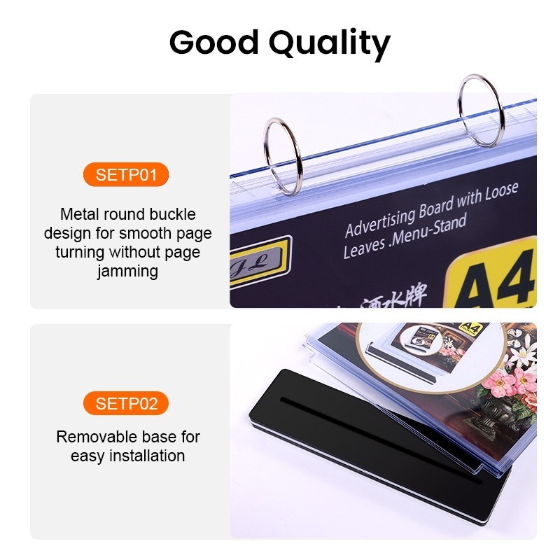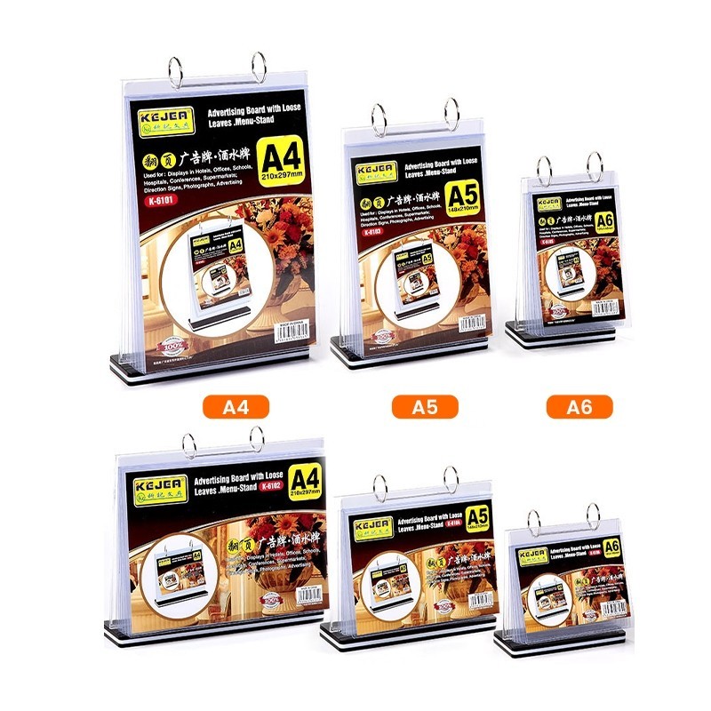 Acrylic Flip Menu Holder A4/A5/A6 Restaurant Display Stand with 6 Pocket Display Table menu Stand