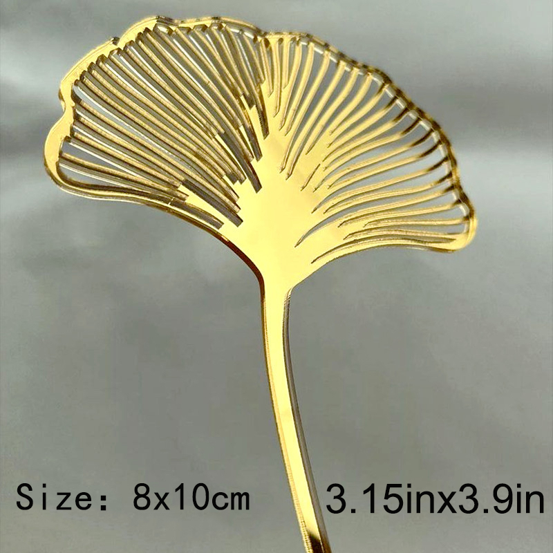 Acrylic Gold Ginkgo Leaves Cake Topper Happy Birthday Cake Topper Baking Accessories Party Supplies Cake Decorating Tools