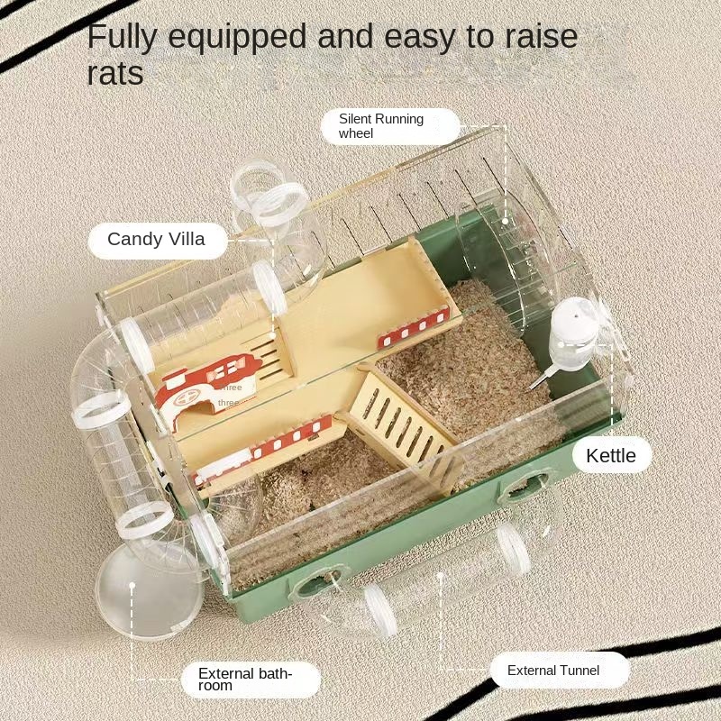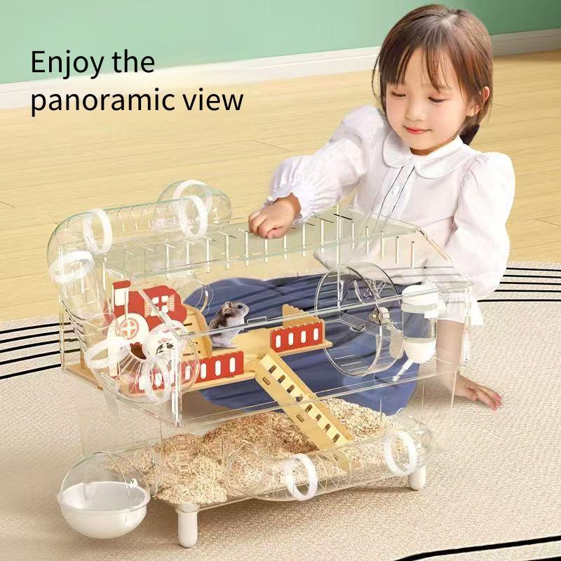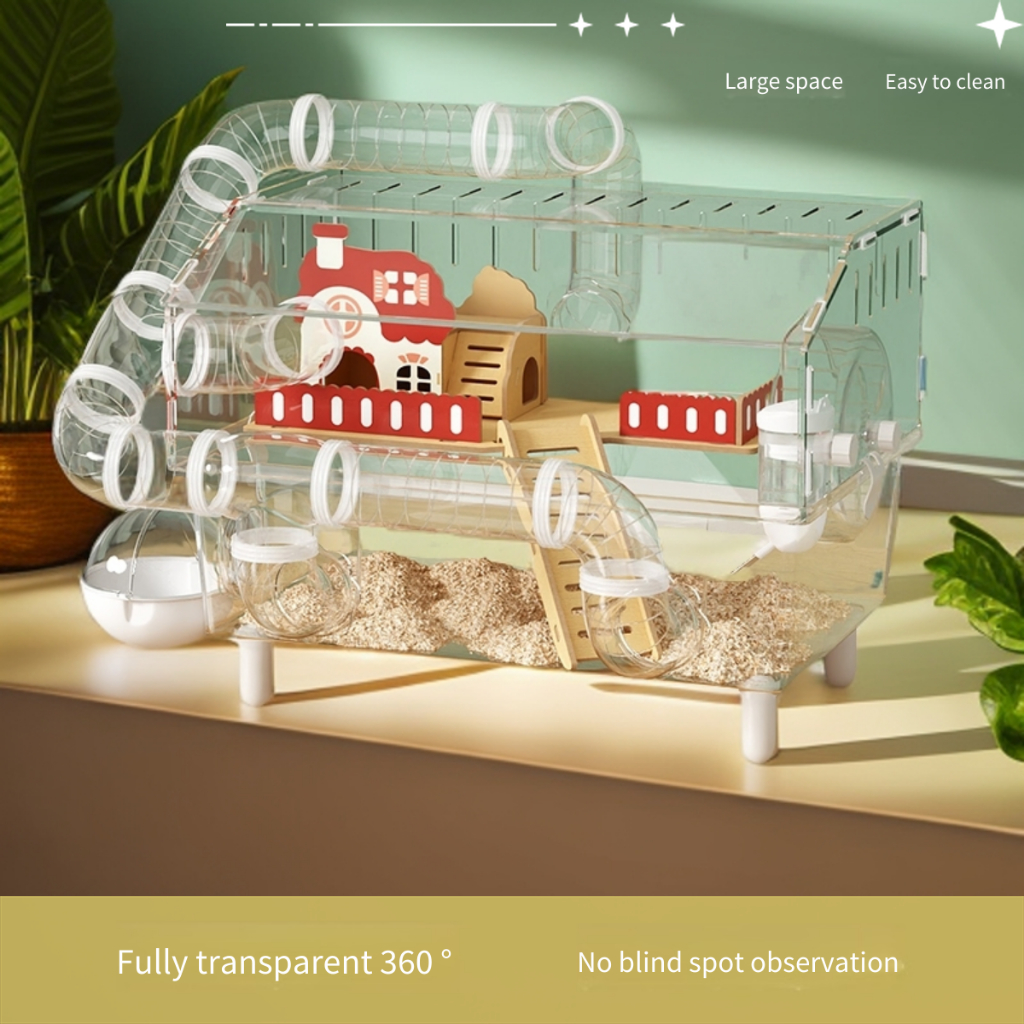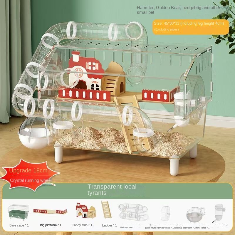 Acrylic Hamster Cage Fully Transparent Double-Layer Luxury Hamster Villa Long Sports Pipe Golden Bear Special Box Large Space Pet Cage Bite-Resistant Escape
