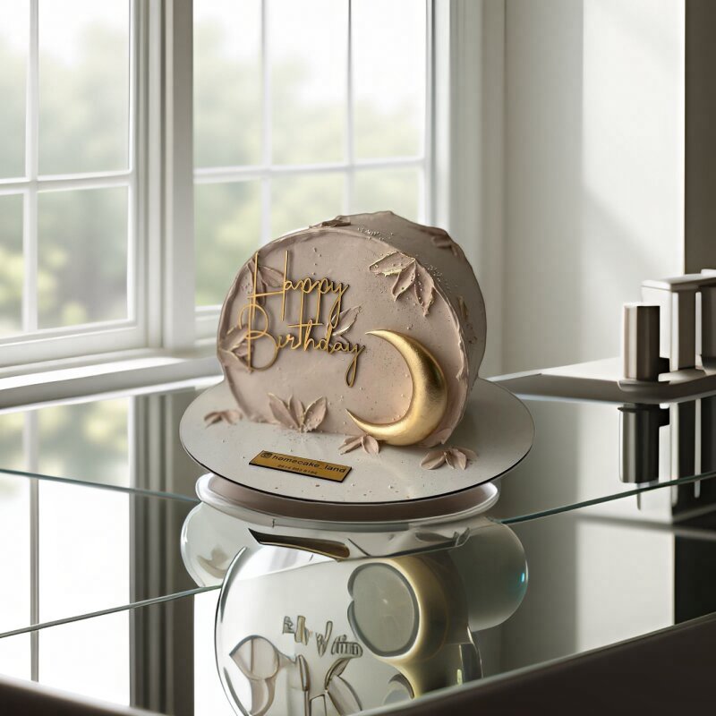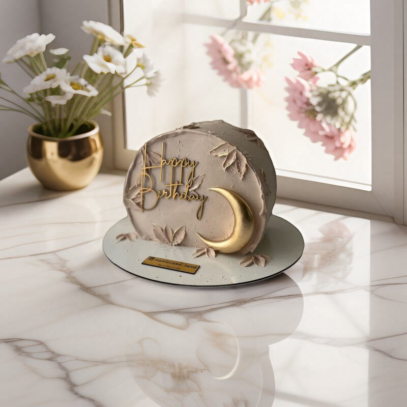 Acrylic Happy Birthday Cake Topper with Moon, Gold Moon Birthday Cake Topper Set Front or Side Cake Decoration for Birthday Cake.