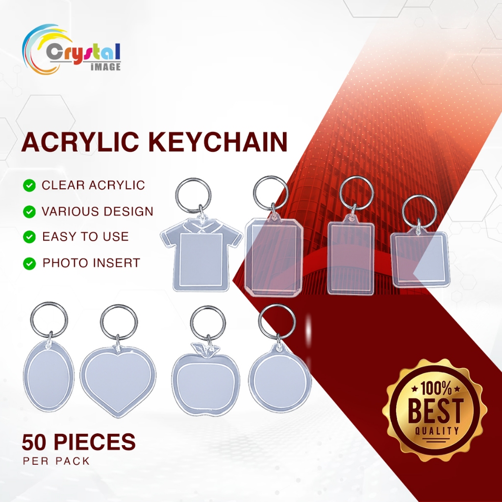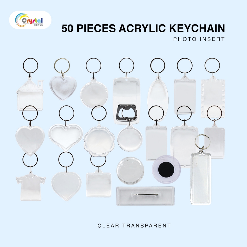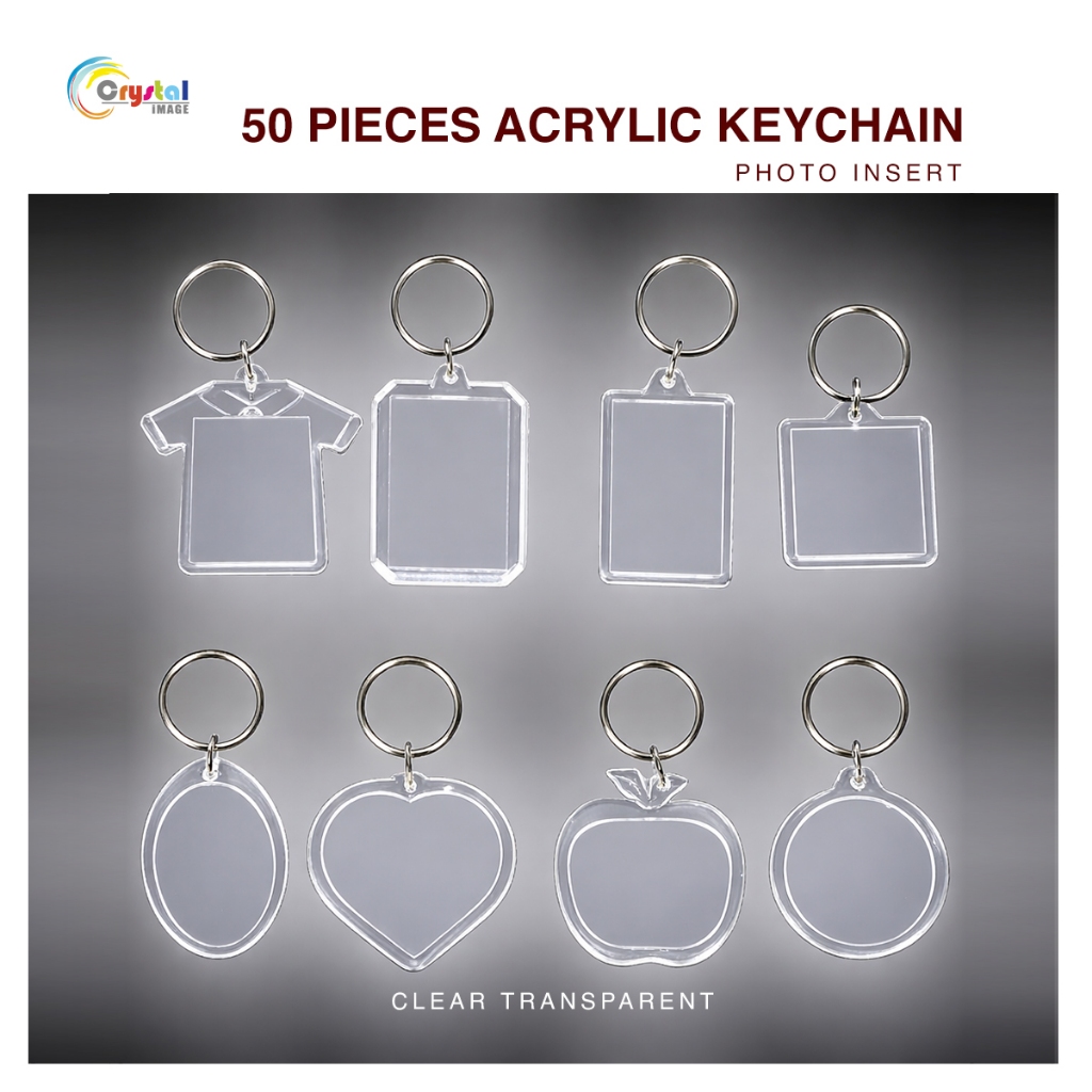 50PCS Clear Acrylic Keychain Photo Frame | Transparent Picture Keychain with Photo Insert