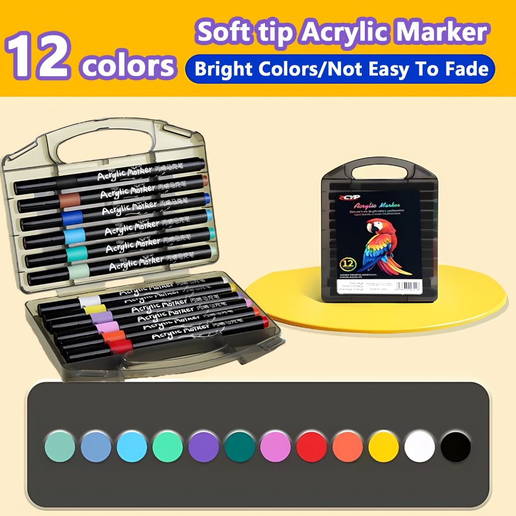 Acrylic Marker Pen Set Box-packed Coloring Set Color Pen Painting Highlighter Pen Set Art Supplies