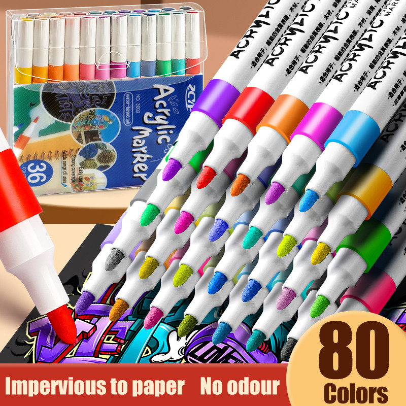 Acrylic Marker Set 12/24/36/48/60/80 Colors Waterproof Marker DIY Glass Painting Drawing Art Supplies