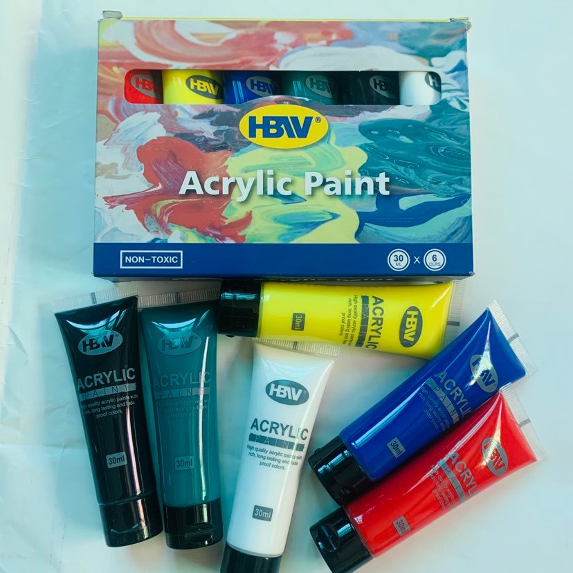 Acrylic Paint HBW Non-Toxic 6colors set of 6 tubes (30ml/tube) (SOLD PER SET)