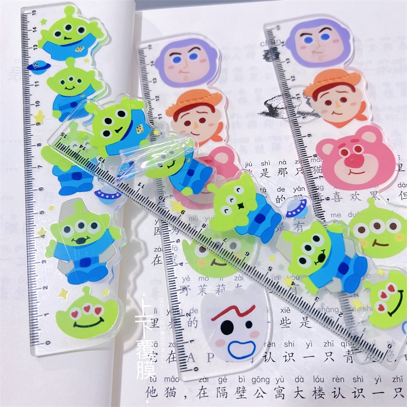Acrylic Ruler Toy Story Buzz Lightyear Three-Eyed Strawberry Bear Student Scale