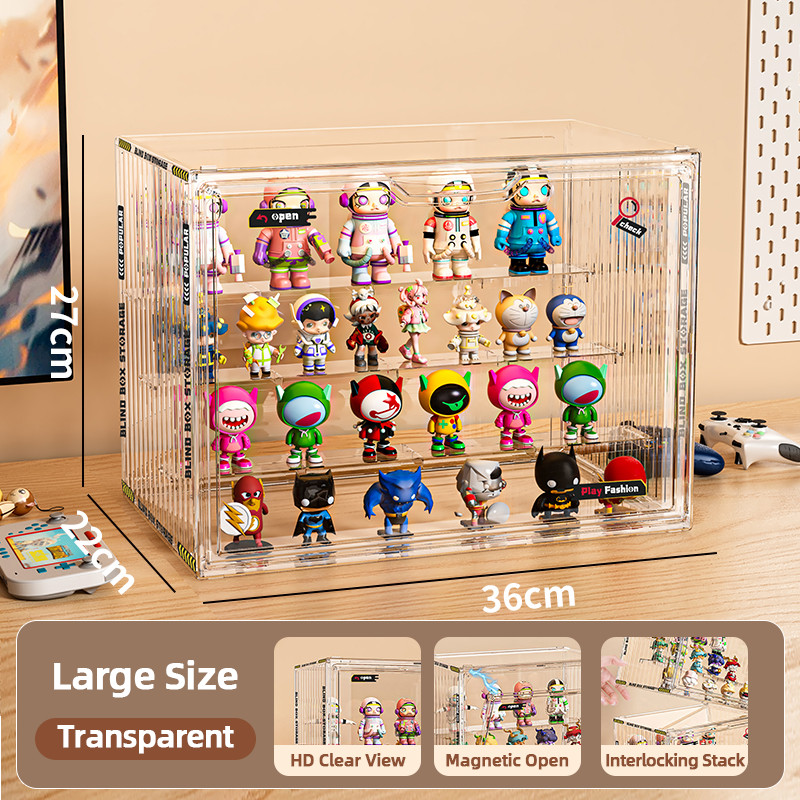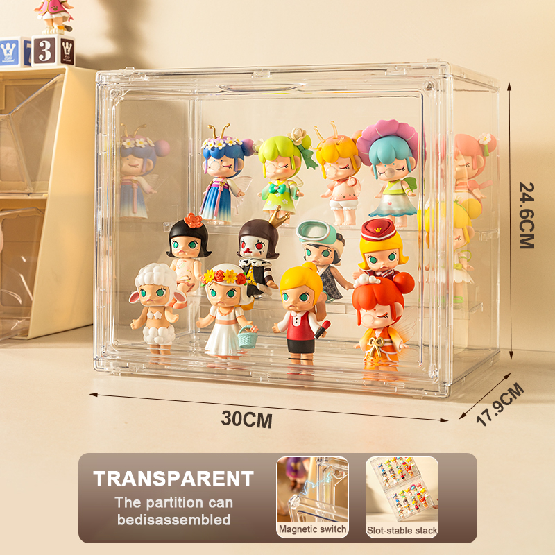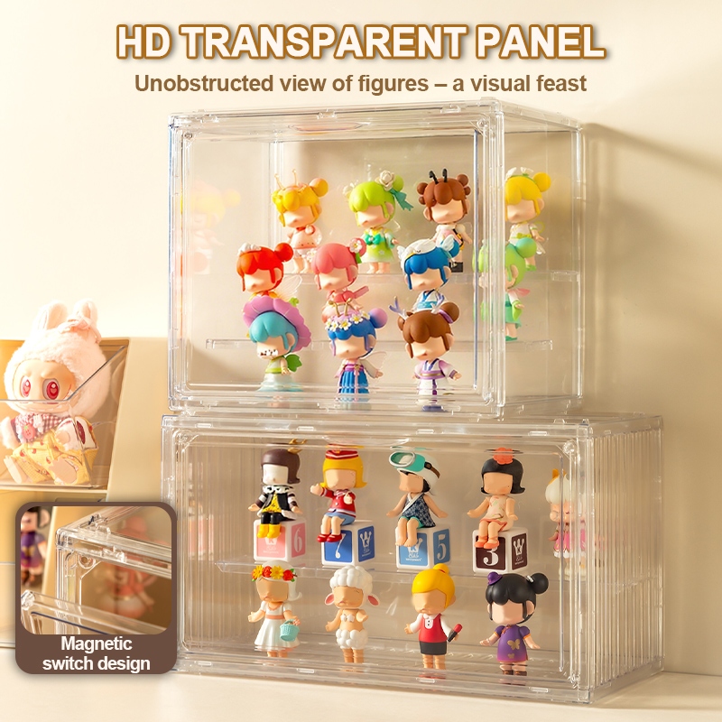 Acrylic Toy Storage Box Popmart Storage Organizer Transparent Boxes Acrylic Display Case Stackable Magnetic Dustproof Box