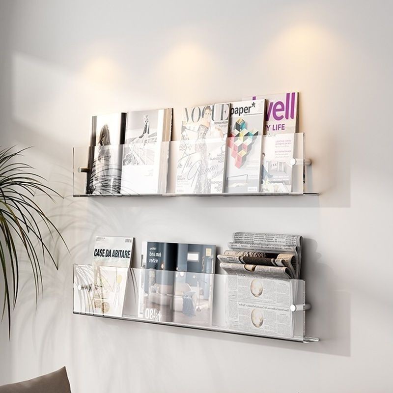 Acrylic Wall-Mounted Bookshelf, Display Storage Shelf, Magazine Rack, Book Display Stand