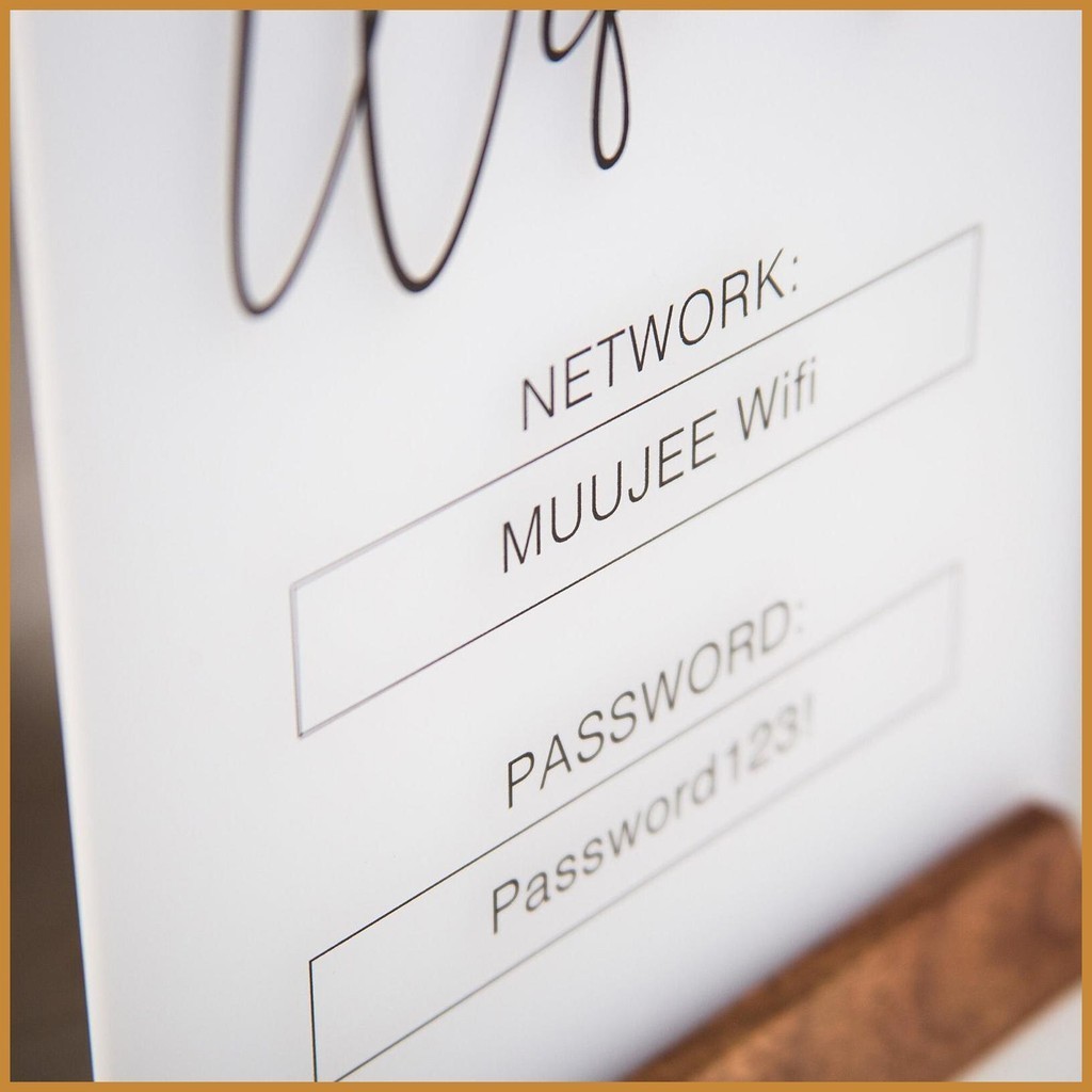 Acrylic WiFi Sign | WiFi Password Board Sign with Wooden Base for Guest Room | WiFi Password Display Board for Wall explanph