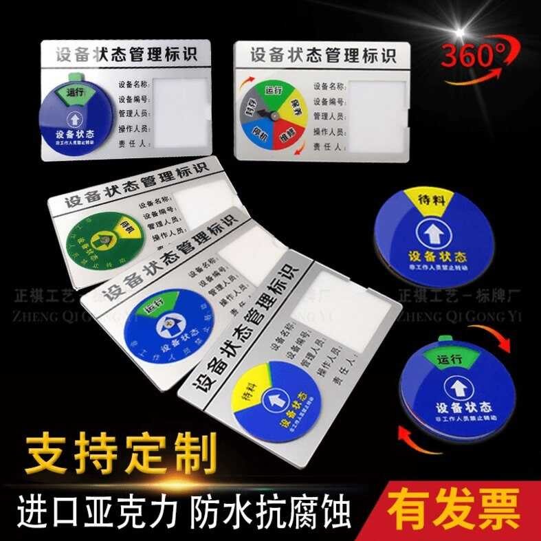 Acrylic equipment label, machine operation indicator, magnetic status management card