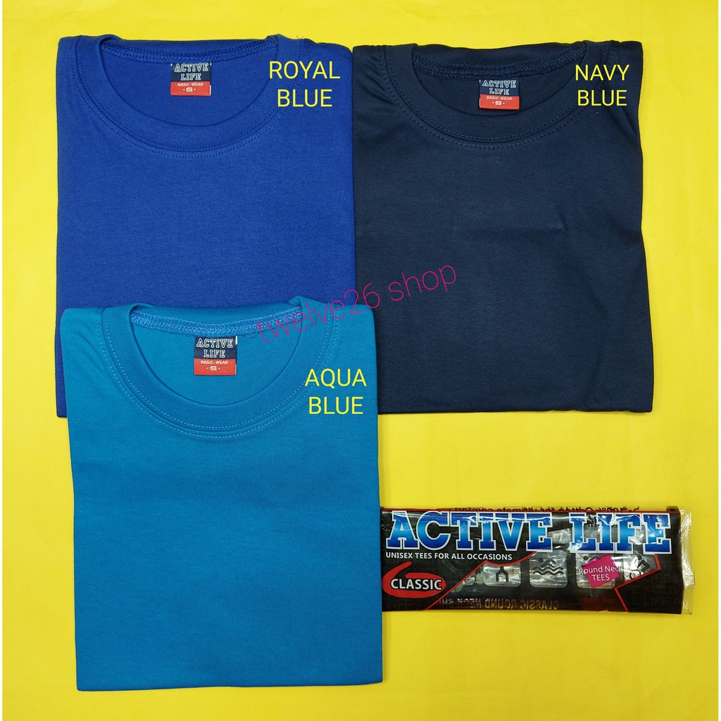 Active Life Round Neck T Shirt Plain Unisex 10 to 3XL Royal Aqua Navy Blue
