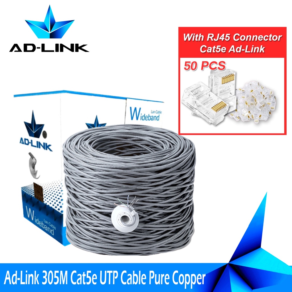 Ad-Link 305M Cat5e UTP Cable Indoor Pure Copper W/50pcs Ad-Link Rj45 Connector Cat5e Classic