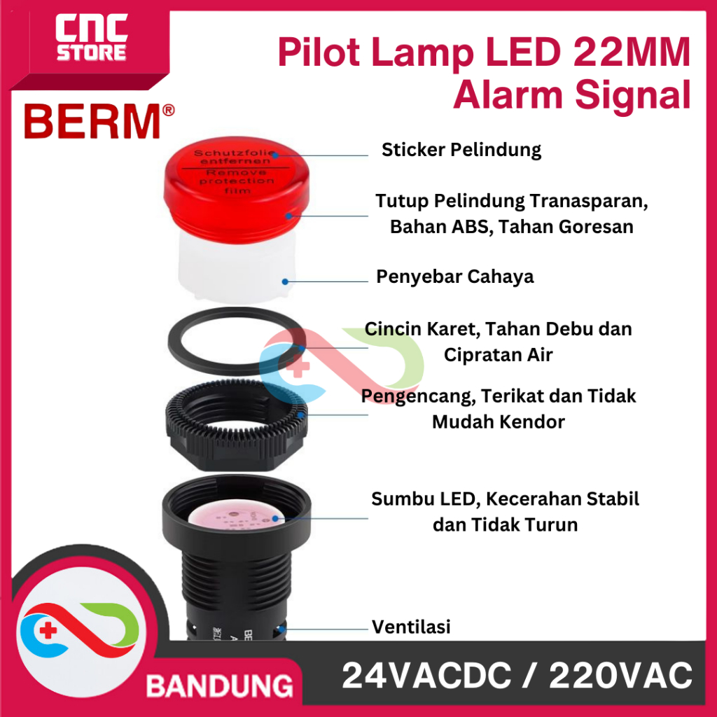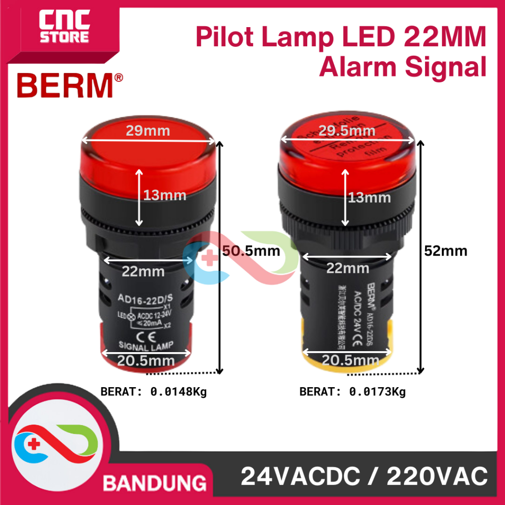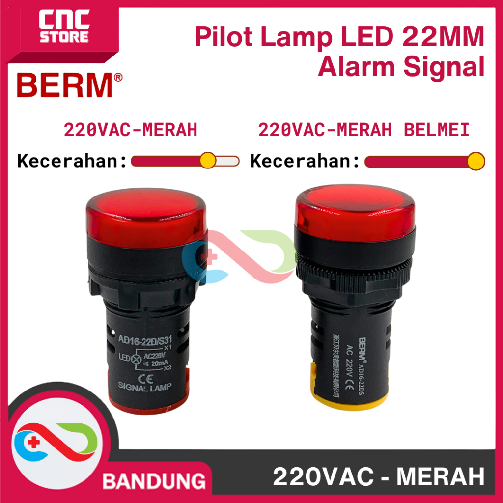 Pilot Lamp LED 22mm AD16-22SM – Alarm Panel Indicator Light AC 220V 220VAC