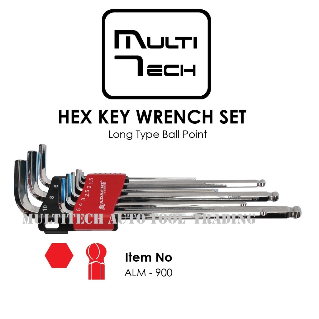 Adachi Hand Tools - Hex Key Wrench (Allen Key) Set 9pcs