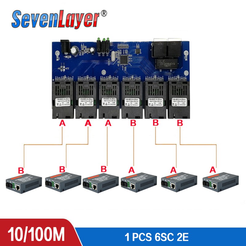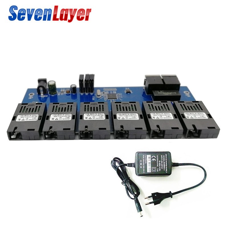 Adapter Converter Ethernet Fiber Optical 2 RJ45 6 / 100 M 20km 10 / 100M PCBA