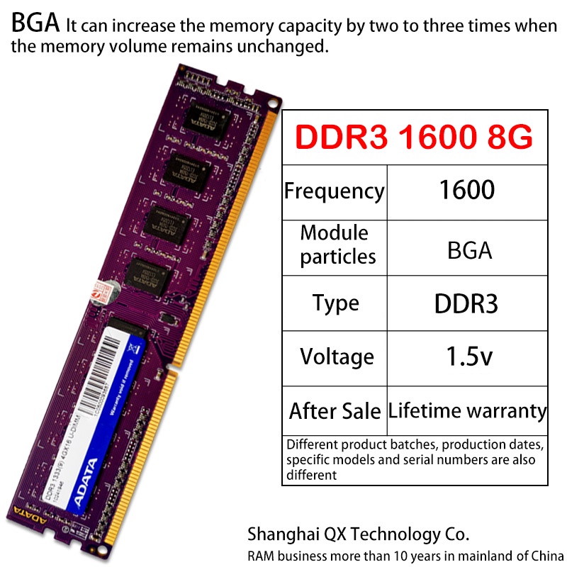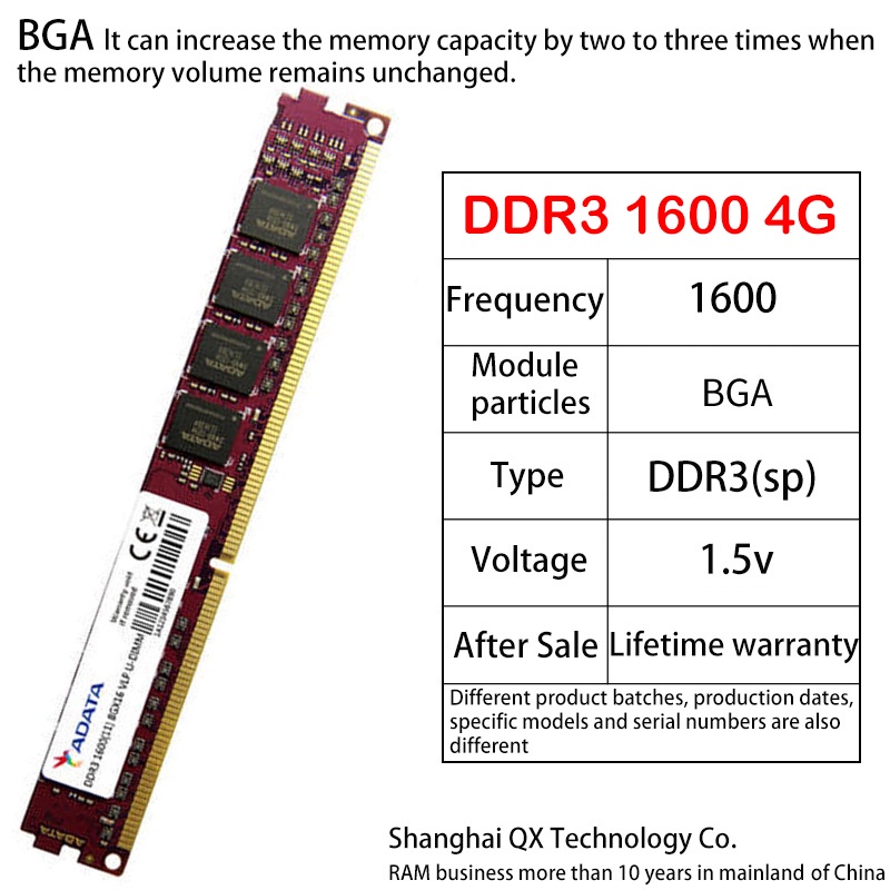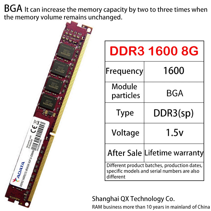 Adata DDR3 DDR3L RAM 2GB 4GB 8GB 1333/1600MHz DIMM Desktop Memory PC3 12800