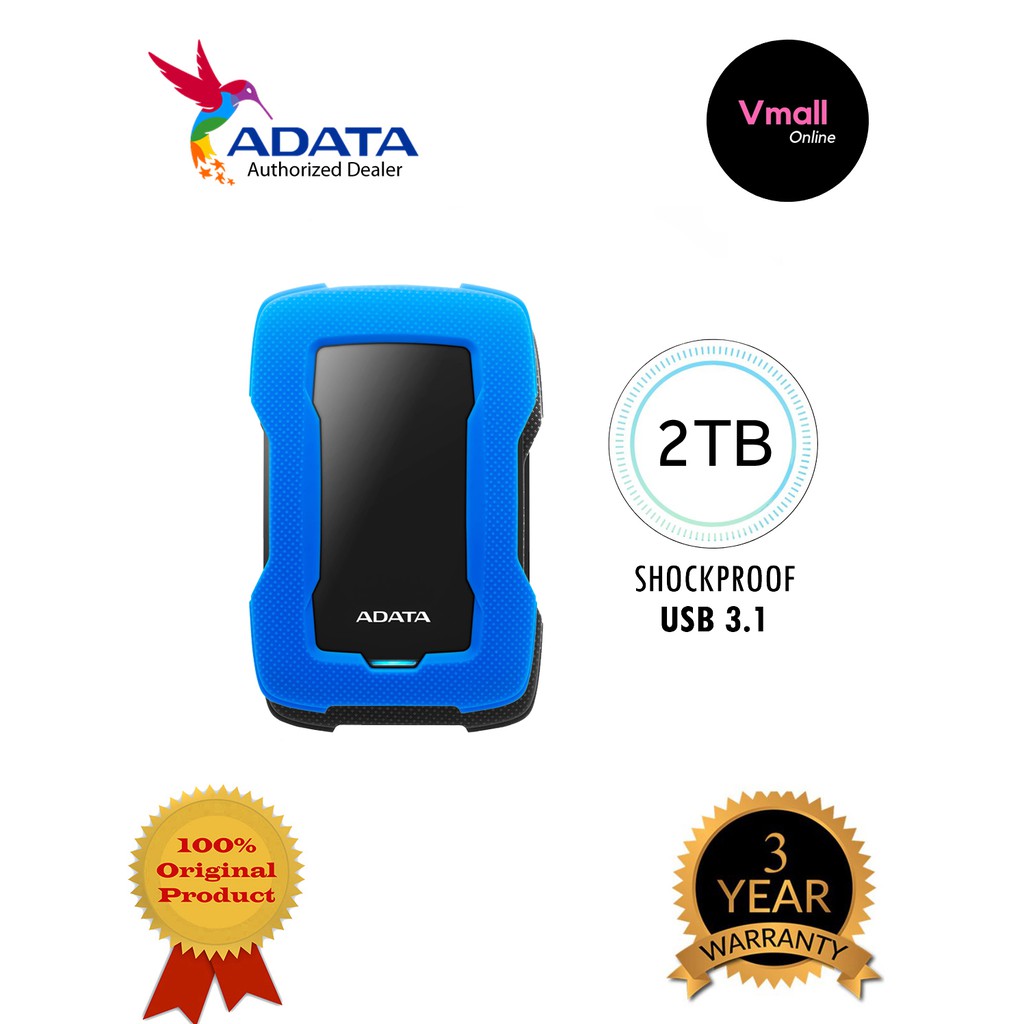 Adata Hd330 2Tb 2.5 Rugged And Shockproof External Hard Drive With USB 3.1 Ready With 3 Yrs Warranty