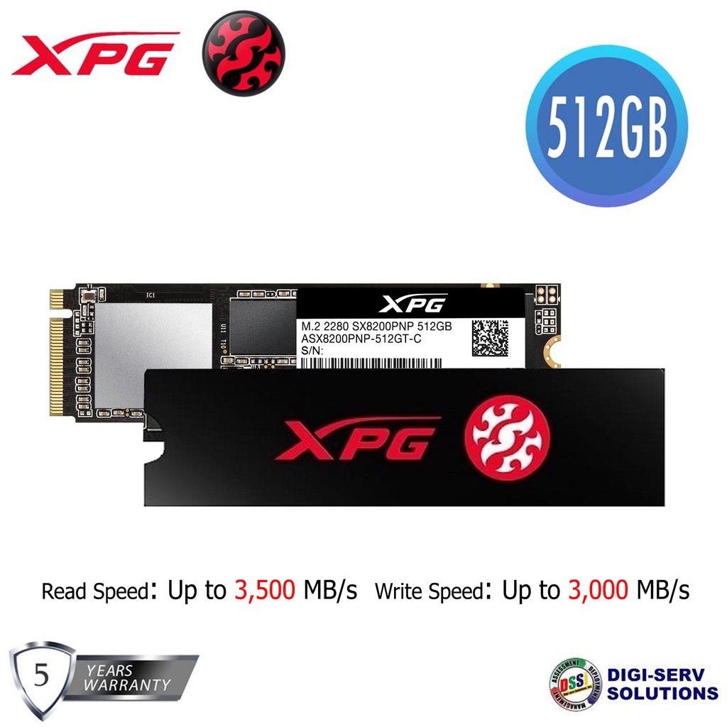 Adata XPG SX8200 512GB PRO PCIe GEN3X4 M.2 2280 SSD with Cool XPG heatsink included