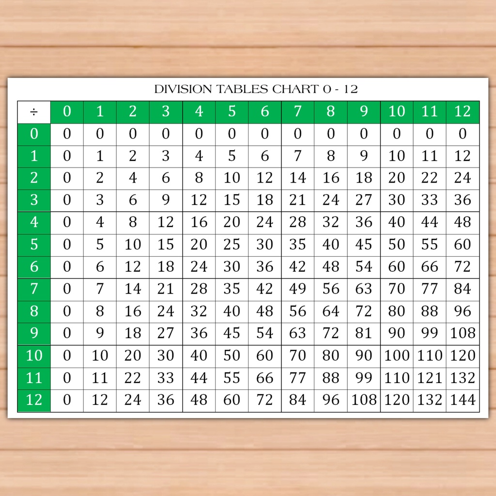 Addition Subtraction Multiplication Division Tables Chart Laminated
