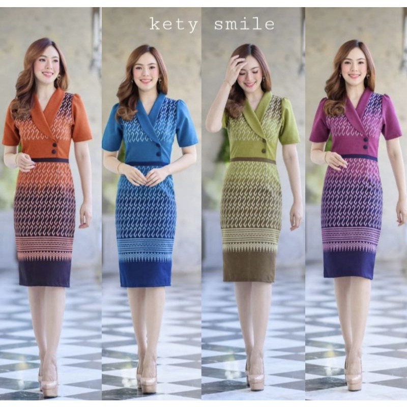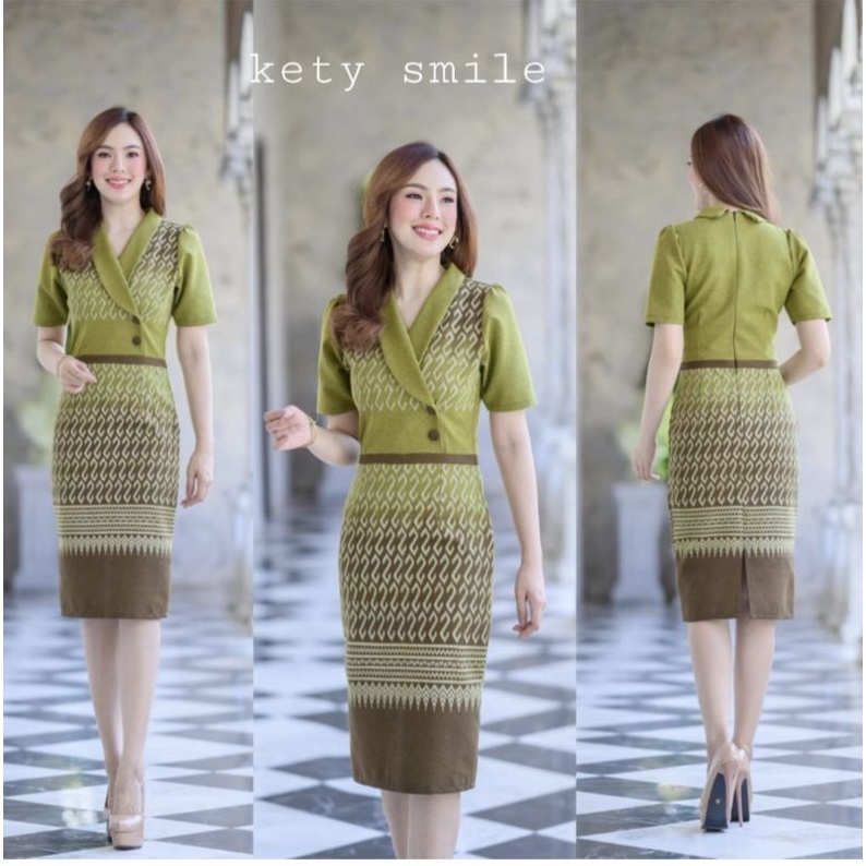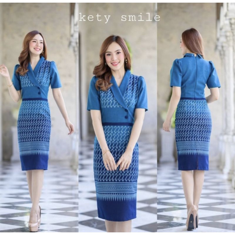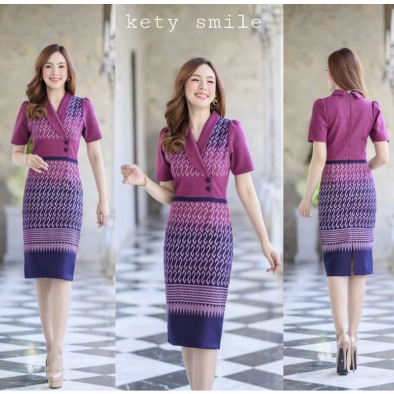 Adhesive Cotton Dress Royal Request Pattern Teacher Uniform Thai Government Evening Polite