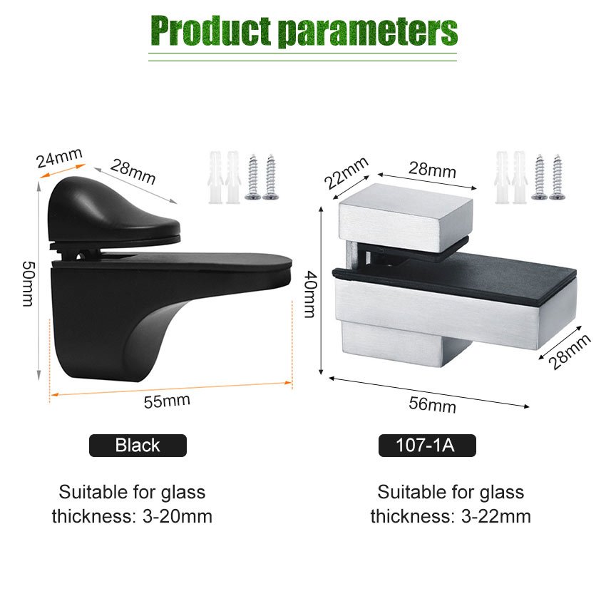 Adjustable 3-22mm Glass Clamp Board Metal Wood Glass Shelf Bracket Wall Mount Shelf Plated Clip