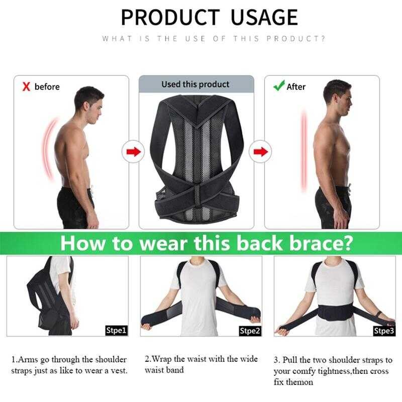 Adjustable Back Posture Corrector For Men Lumbar Spine Support Steel Plate Humpback Orthosis