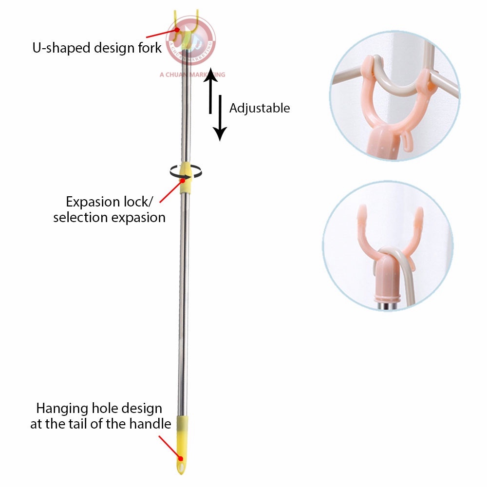 Adjustable Clothes Pole Fork Scalable Pole Closet Stick Pole Clothes Hook Picker (Panungkit)