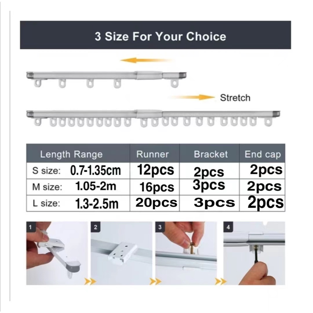 Adjustable Curtain Track Telescopic Rod Wall Mount Track System