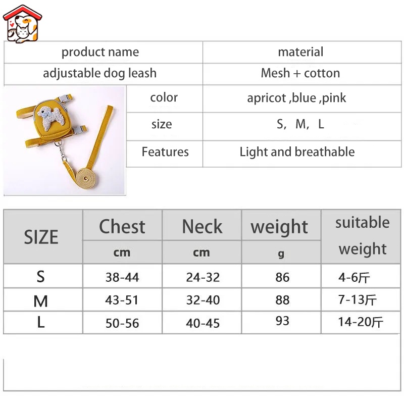 Adjustable Dog Harness with backpack Puppy Chest Vest Back with Leash Pet Harness Set