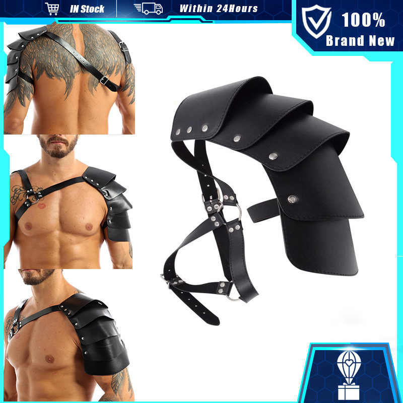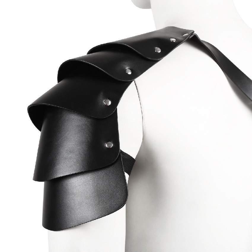 Adjustable Gothic Steampunk Shoulder Armors PU Leather Harness Strap for Medieval Pauldron Shoulder