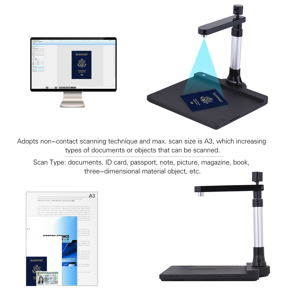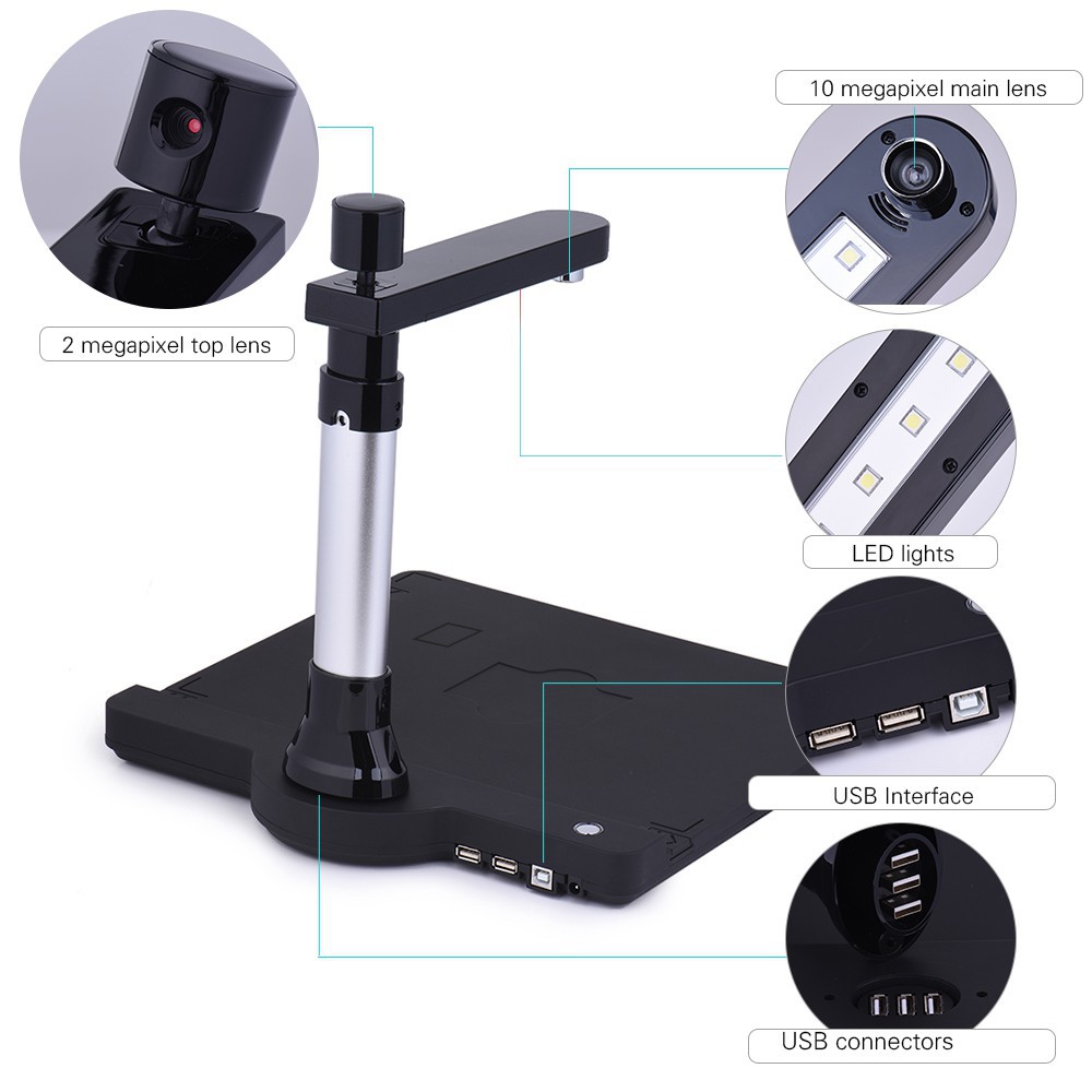 Adjustable HD High Speed USB Book Image Document Camera Scanner Dual Lens (10