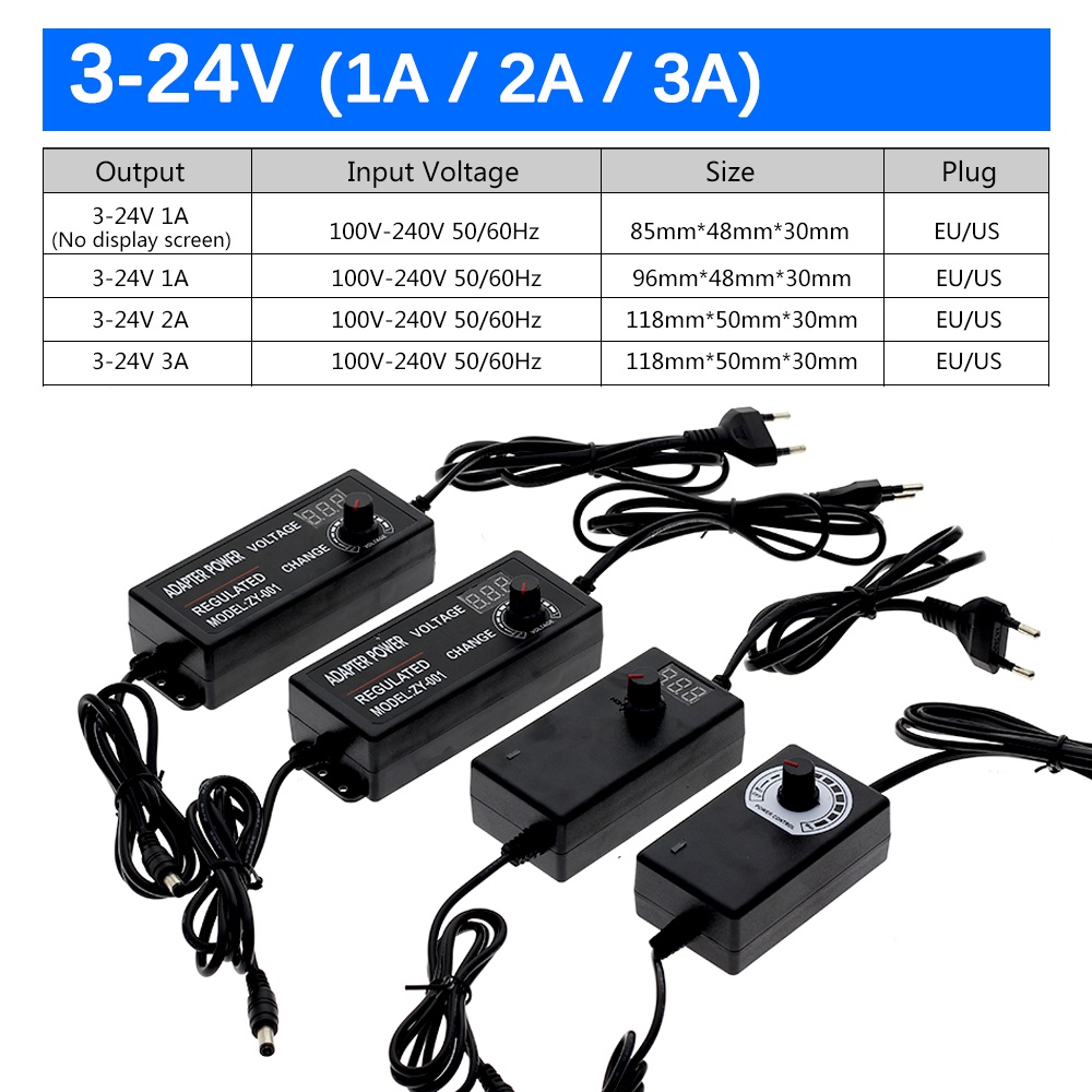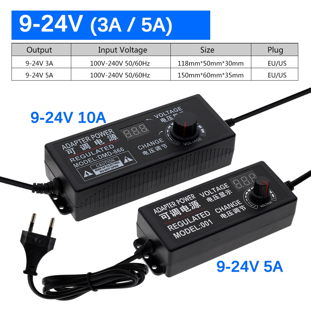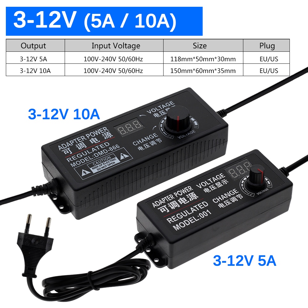 Adjustable Power AC100-240V to DC 3-24V DC9-24V DC3-12V 1A 2A 3A 5A 10A Adjustable Voltage Regulated Adapter Power Supply US plug