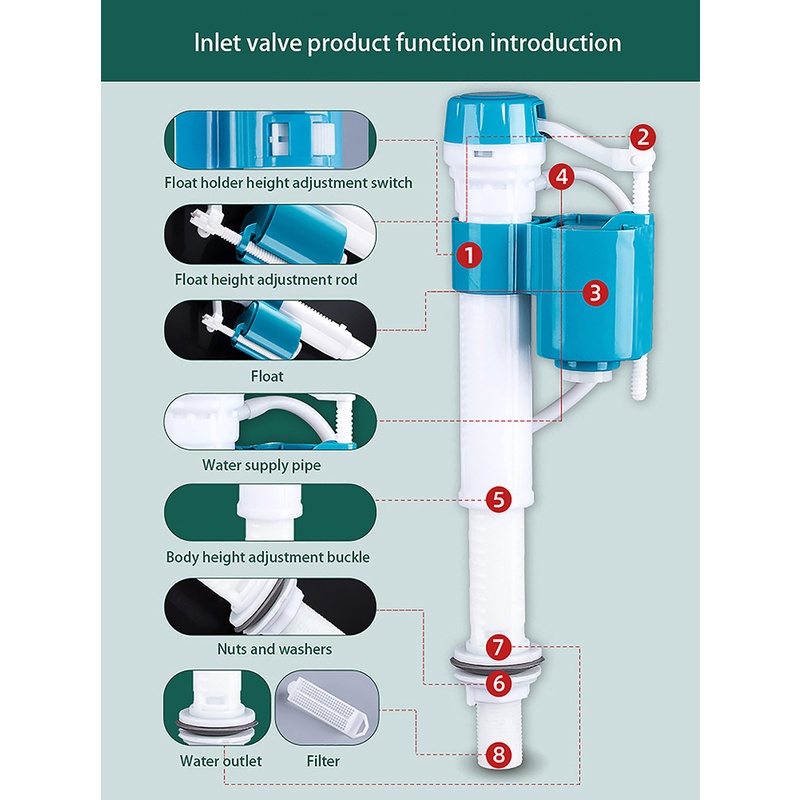 Adjustable Replacement Fill Valve Assembly Universal Toilet Fill Valve Flush Valves for Toilet Tanks