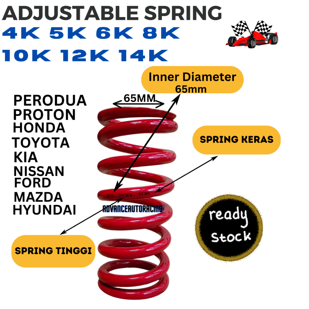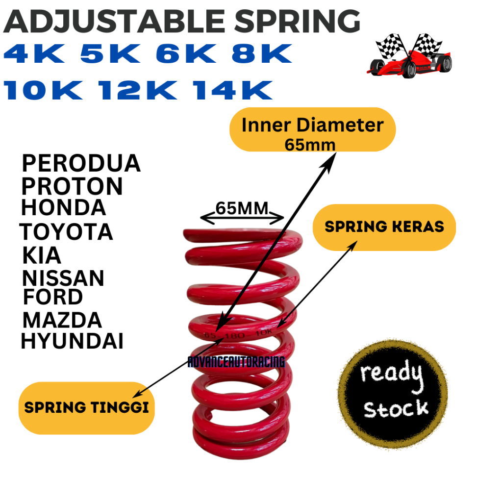 Adjustable Suspension Spring 4K/5K/6K/8K/10K (65mm)For Adjustable Absorber Using (Price For 1pc) Adjustable Spring