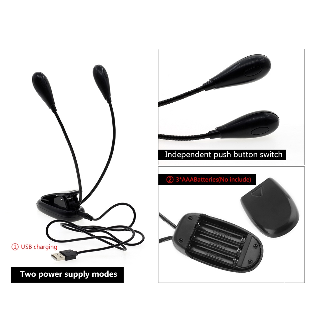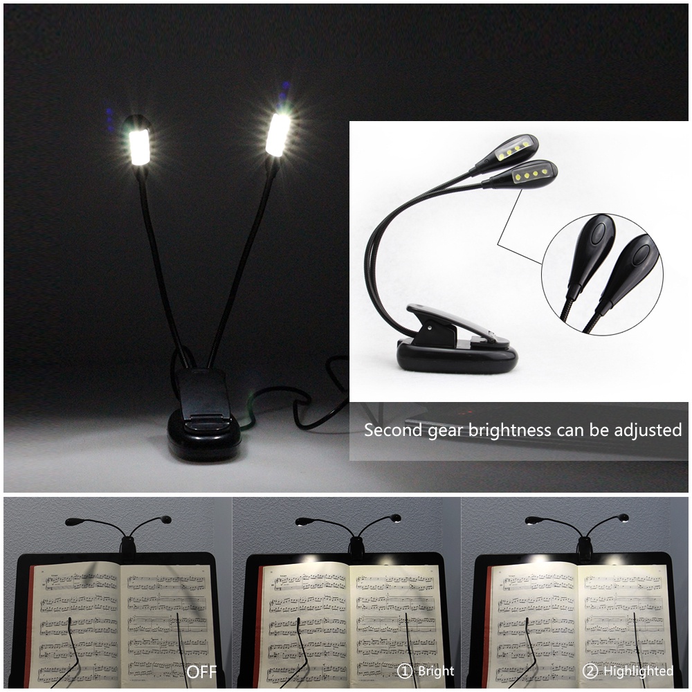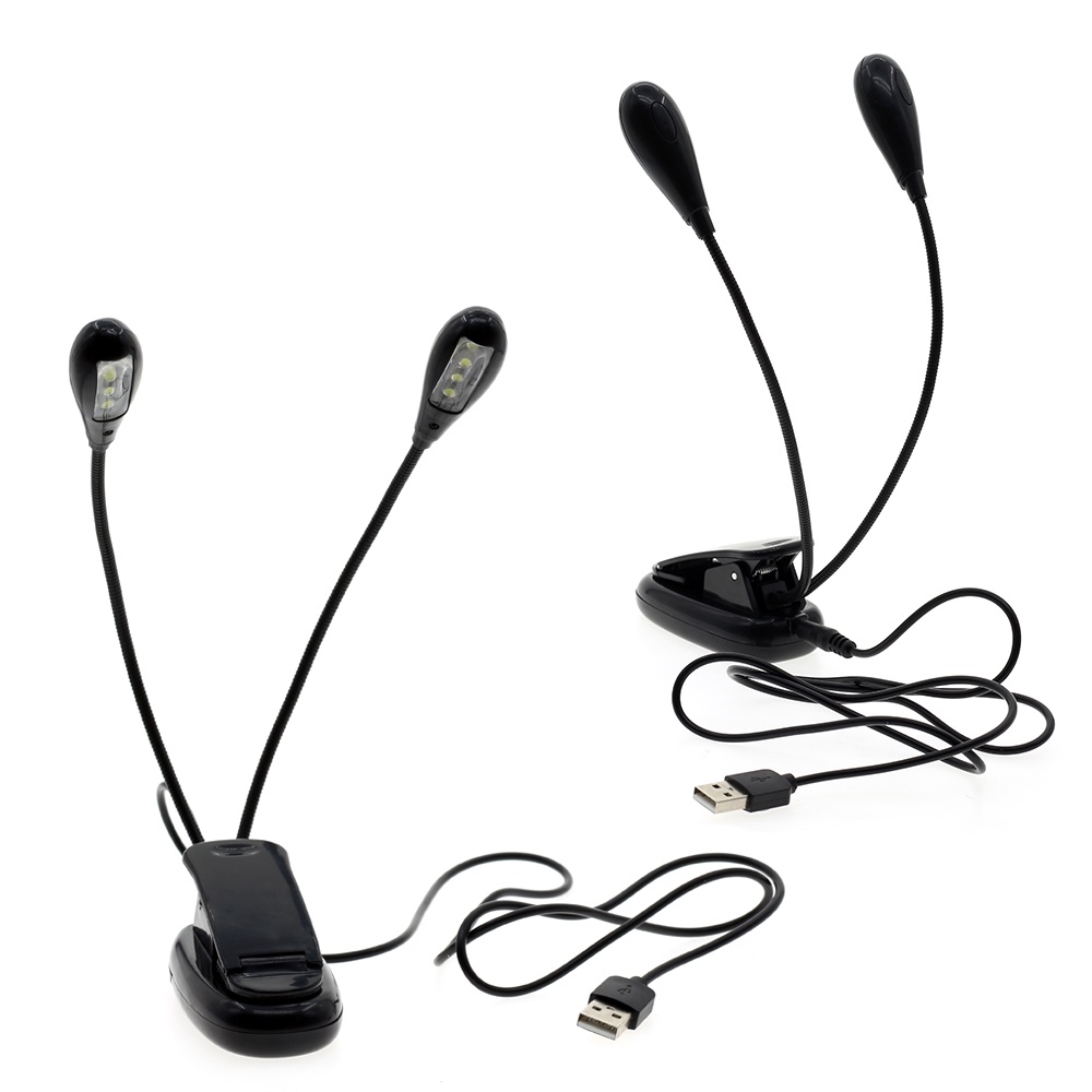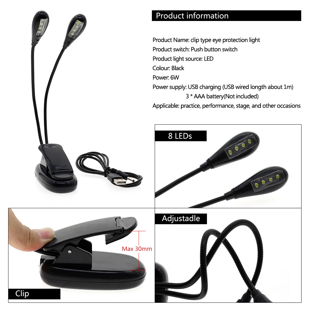 Adjustable USB LED Table Lamp 8 LEDs Clip-On Two Arms Light for Music Reading and Book Reading Flexible Gooseneck Desk Lamp