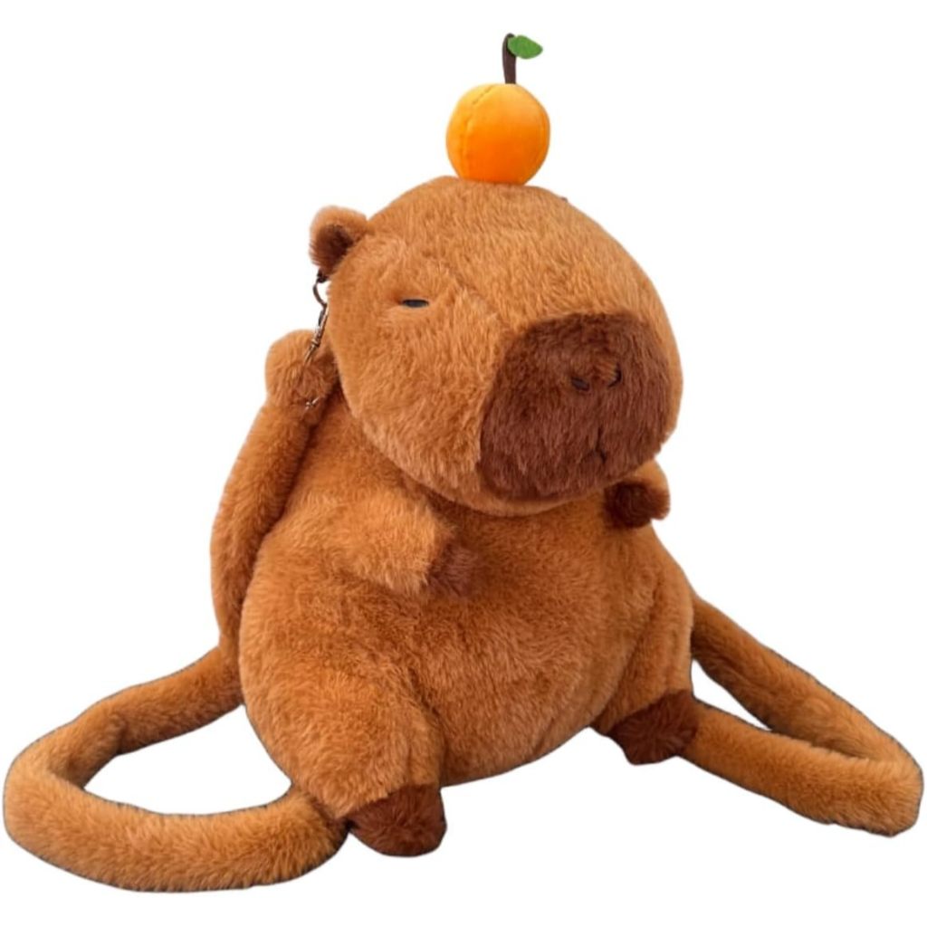 Adorable Capybara Wallet Backpack with Leash Fluffy Orange Capybara Stuffed Animals Shoulder Backpacks Lifelike Capybara Leash Casual Bag