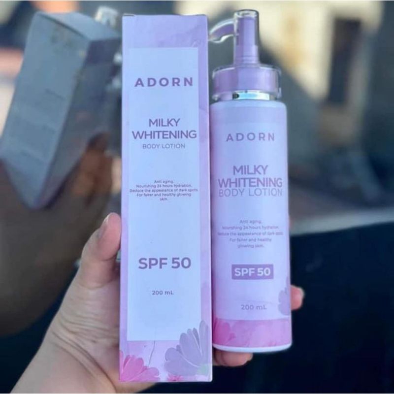 Adorn Milky body lotion with SPF 50 plus 1 adorn soap